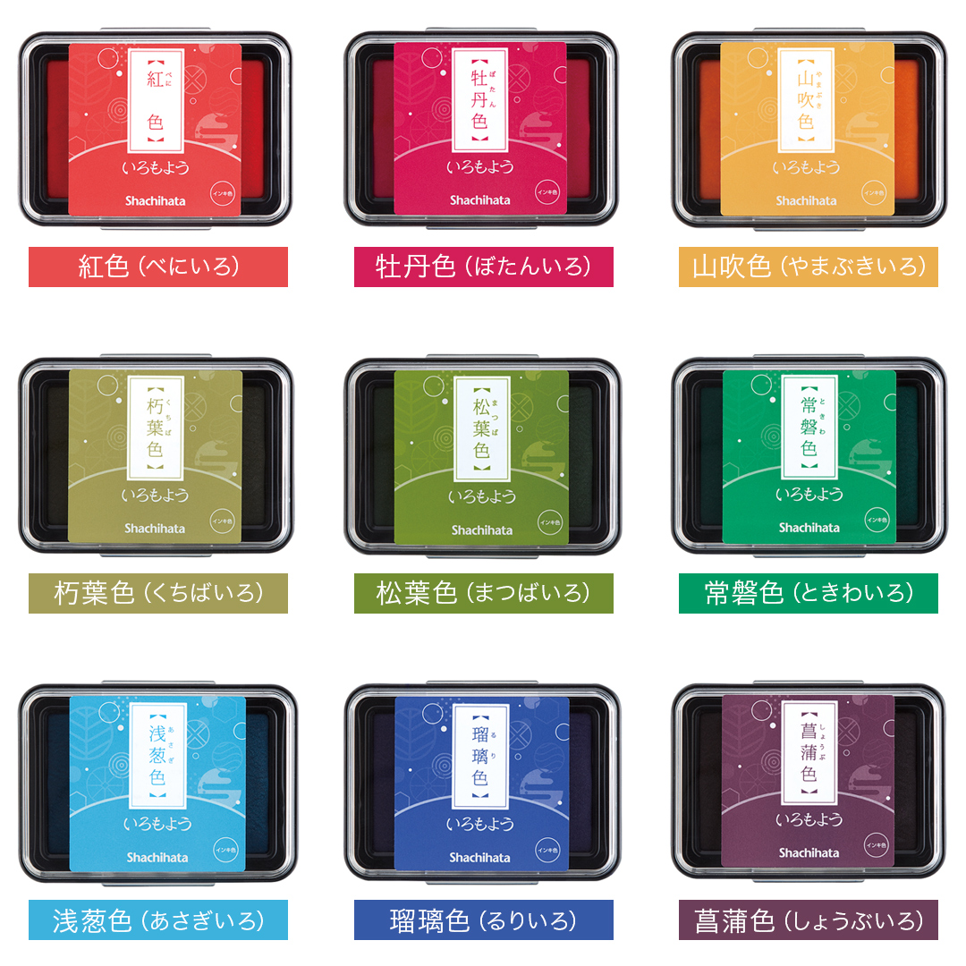 ゴム印アートに最適なスタンプ台「いろもよう」。お好きな3色をまとめ買いできるセットです。