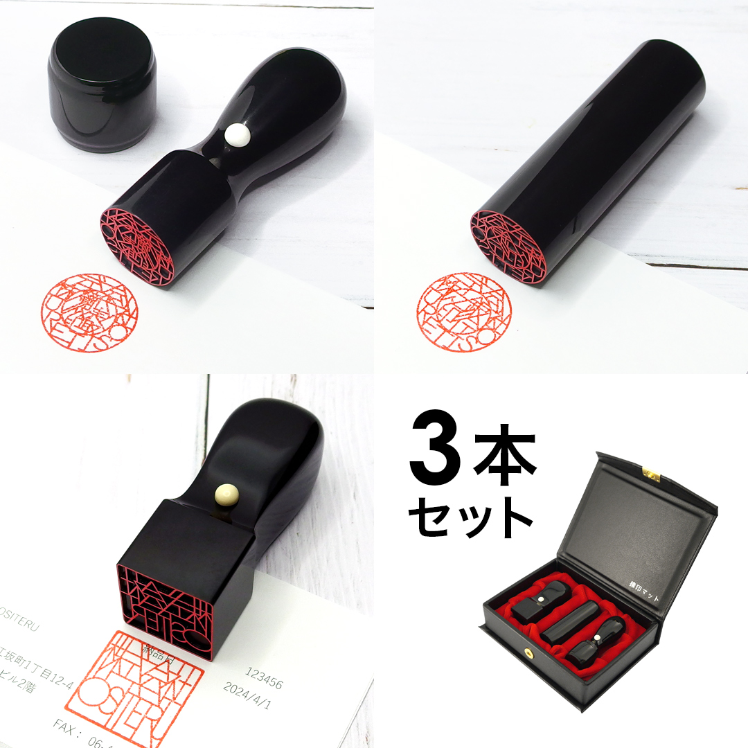 法人3本セットは、起業・開業に必要な実印・銀行印・角印が揃うお得な内容となっています。