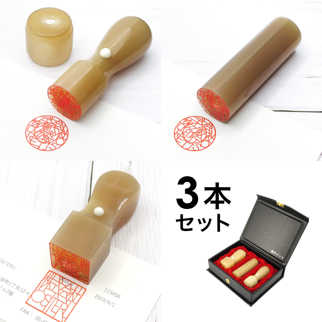 法人3本セットは、起業・開業に必要な実印・銀行印・角印が揃うお得な内容となっています。