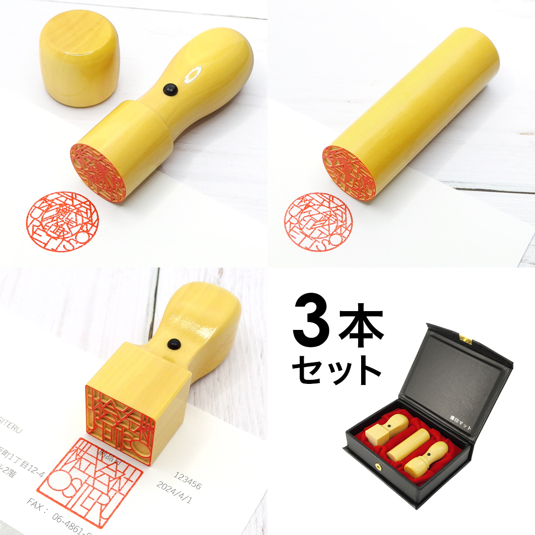 法人3本セットは、起業・開業に必要な実印・銀行印・角印が揃うお得な内容となっています。