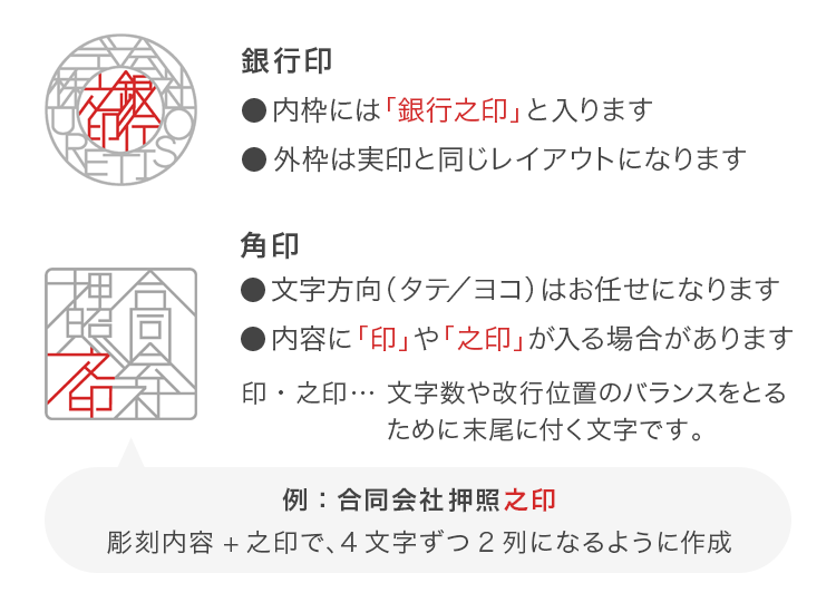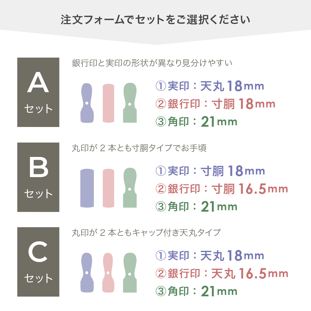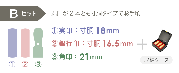 法人3本セットは、起業・開業に必要な実印・銀行印・角印が揃うお得な内容となっています。