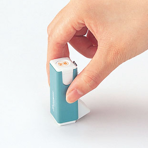 キャップを外さずワンタッチで捺せる角型ボディのスタンパー。