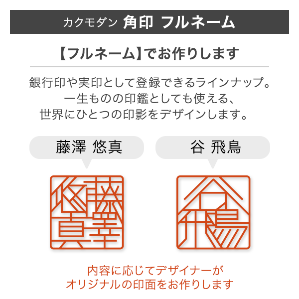 「フルネーム」タイプは、実印・銀行印など一生ものの印鑑としても使えるラインナップになります。